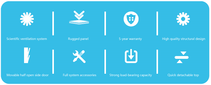 ◆ Tool free installation of top cover, multiple cable entrances, and convenient access for a large number of cables; Customizable opening brush sealing can effectively prevent foreign objects and dust from entering the cabinet.